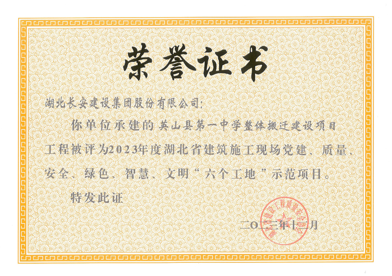 • 2025-11-25 湖北長安建設9項工程獲評省(楚天)優質工程